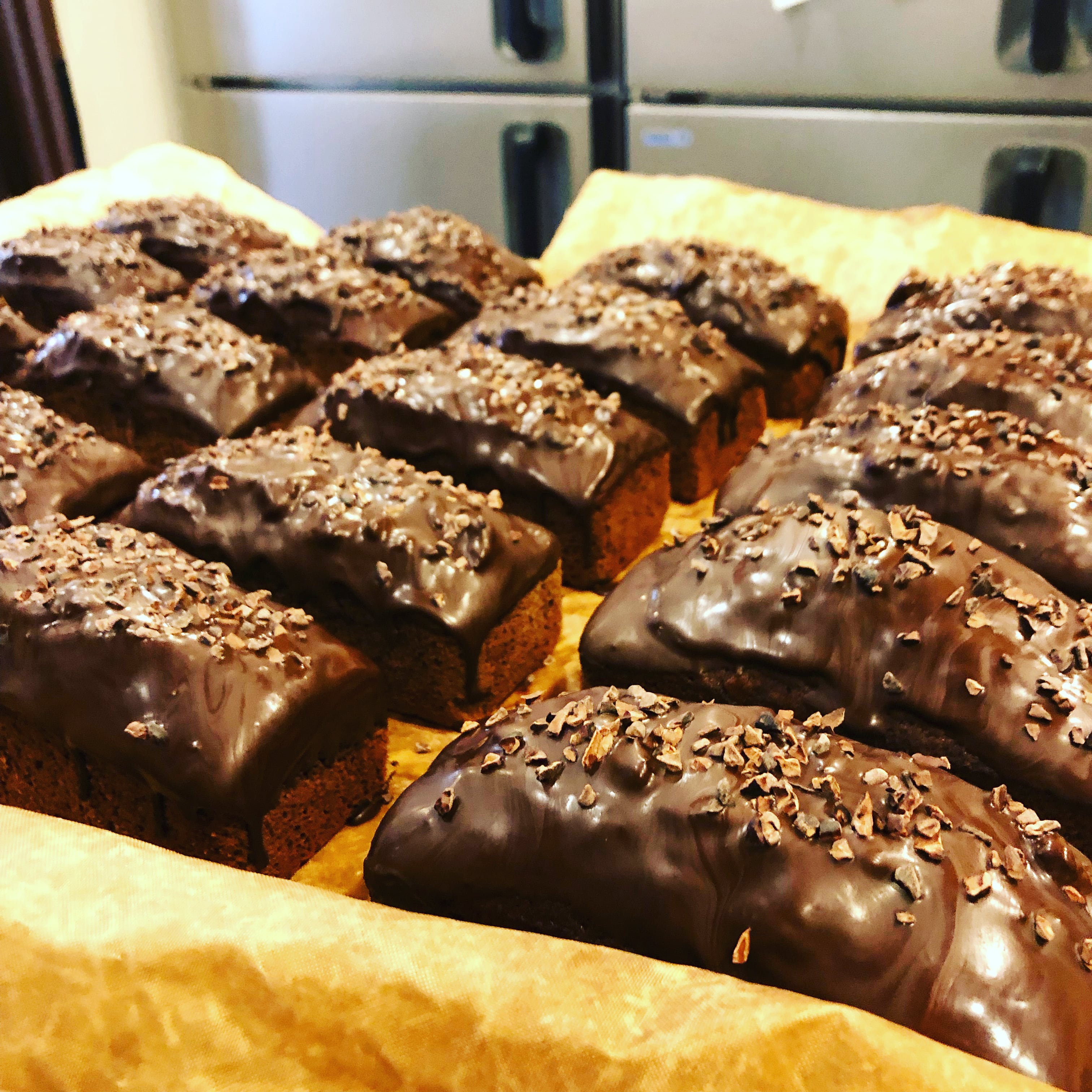 フランボワーズを混ぜ込んだココア風味のパウンド生地に、上からチョコレートをかけた期間限定商品です。